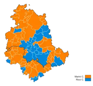 | Claudio Ricci | 146,752 | 39.27 | 1 | Northern League Umbria | 49,203 | 13.99 | 2 | ||