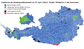 - ↑ "Bundespräsidentenwahl 2016 – Gesamtergebnis inklusive Verlautbarung der Bundeswahlbehörde". Bundesministerium für Inneres (in German). 2 May 2016. Retrieved 23 May 2016.