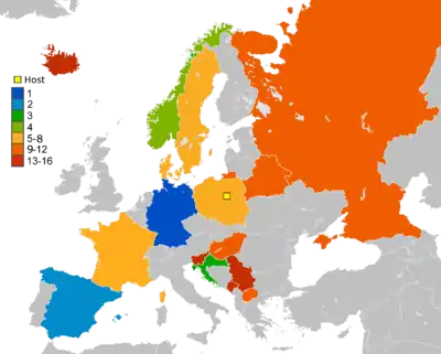 Poland would win the hosting rights, gaining the most votes of the three.[5]