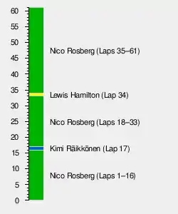 Romain Grosjean was unable to start the race due to brake problems. At the start Nico Rosberg got away in the lead and Fernando Alonso made a strong start up to 5th. Carlos Sainz collided with Nico Hülkenberg sending the latter into the pit wall and out of the race, while Sainz was able to continue. The safety car was deployed while Hülkenberg's car was cleared. As the safety car came in and the race resumed a Marshall was still on the track still picking up debris from the accident. After the restart Lewis Hamilton could not overtake Rosberg and Daniel Ricciardo ahead of him. Jenson Button retired from the race at two-thirds distance with a brake issue. Rosberg won the race after having to withstand late race pressure from Ricciardo with Lewis Hamilton driving a steady race to 3rd. Kimi Räikkönen came home 4th ahead of his teammate Sebastian Vettel while Max Verstappen was able to take 6th with Fernando Alonso falling back to 7th.[10]