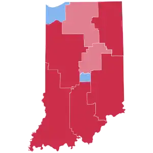 Trump won the state with 56.47% of the vote, while Clinton received 37.46%.[3] Indiana is the home state of Pence, which was believed to have provided important assistance to the Trump campaign in what already would have been a Republican-leaning state.