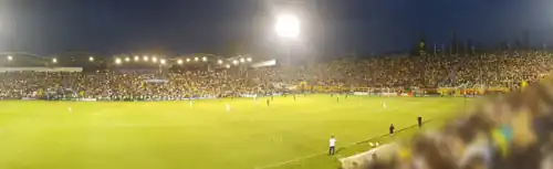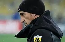 In the winter, AEK, in order to replace the injured Mantalos and Johansson, proceeded with the transfers of the international Iranian midfielder Masoud Shojaei and the Spanish Erik Morán, while Traustason, Patito Rodríguez and Vinícius departed, with the latter being replaced by Niklas Hult from Panathinaikos. Despite the small roster, the team continued in the same manner in a very competitive league, until the following events occurred. Their contenders for the league, PAOK and Olympiacos faced each other in Thessaloniki and before the start of the game, the coach of the red and whites, Óscar García was hit with a paper roll in the face, resulting in the departure of the squad of Olympiacos and their 0–3 victory on paper. This resulted in PAOK being punished with a 3-point deduction and a one-game home ban, which coincided against AEK.[1] PAOK filed an appeal and after the midnight before the crucial match, the decision came out returning the points, as well as lifting their home ban,[2] with the team of Thessaloniki "magically" managing in a few hours to print and sell all the tickets for the match.[3] So, under these cirmconstances, AEK went to the Toumba Stadium to compete and in a game, where despite the hostile referee, they managed to limit their opponent and everything was going smoothly, until the 90th minute, when at the only big chance of PAOK in the match, Fernando Varela scored with his teammate, Maurício got in the course of the ball with a projection in the air, from an obvious offside position. The referee Kominis initially counted the goal, but after protests from the players of AEK to the assistant, Pontikis and after consultation between the referees, they decided to cancel the goal. This resulted in the major shareholder of PAOK, Ivan Savvidis storming in the pitch with bodyguards to take the team and leave. When the captain of the black and whites, Vieirinha signaled him not to do this, he attacked Kominis. A moment later, he took off his jacket and a revolver was revealed in his belt. Then Kominis decided to stop the match and sent the teams to the locker rooms. After consultation, Kominis returned to the pitch with the players of PAOK to continue the match with the score at 1–0, but the yellow-blacks in the image of the gun refused to come out. The match was abandoned with the score 1–0 in favor of PAOK and the case was transferred to courts, where AEK was vindicated and were awarded the match with 0–3[4] and with the Thessaloniki team being punished with a 3-point deduction from this year's championship, 3 from the next season's championship, a 3-game home ban and the punishment of Ivan Savvidis and Ľuboš Micheľ.[5] With this decision, AEK's task of claiming the championship became easier and eventually came true in the home match against Levadiakos, where they managed to mathematically secure the title winning by 2–0, in celebratory atmosphere in the packed Olympic Stadium. After winning the last game at Rizoupoli Stadium against Apollon Smyrnis, AEK were crowned champions and held a title party in Nea Filadelfeia with their fans, in front of their under construction stadium.[6]