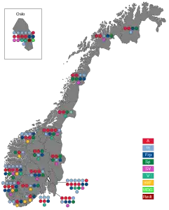 - ↑ "Valgresultat.no". Valgresultat.no. Retrieved 2017-09-11.