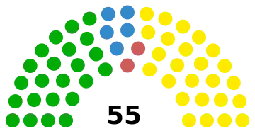 The 55 members of the National Assembly are elected by closed list proportional representation in seven multi-member constituencies.[2]