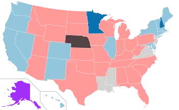 | Nebraska | 24[lower-alpha 5] | 49[lower-alpha 5] | 49[lower-alpha 5] | 4 | N/A (unicameral) | |||