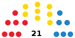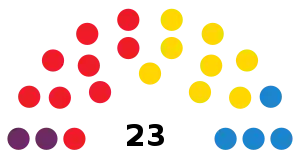 The following table lists party control in the Island Cabildos.[1] Gains for a party are displayed with the cell's background shaded in that party's colour.