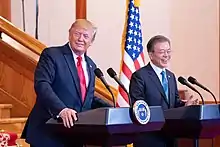 - ↑ "South Korea's Moon Says Trump-Kim Handshake at DMZ Would Be a Milestone". The New York Times. Reuters. June 30, 2019. Archived from the original on July 1, 2019. Retrieved July 1, 2019.