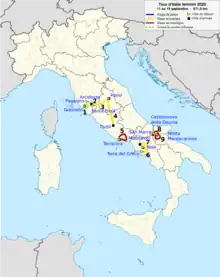 - 16 September 2020 — Torre del Greco to Nola, 97.5 km (60.6 mi)[21]