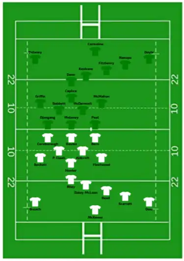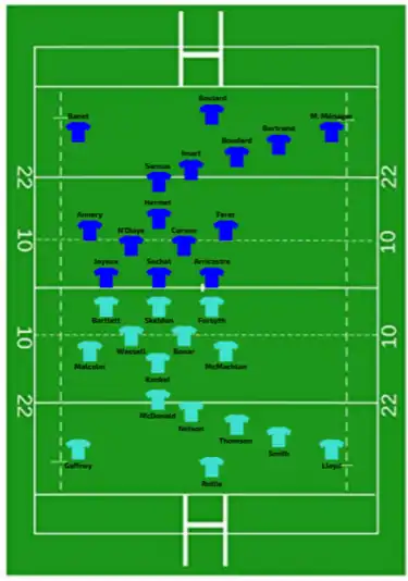 | 12:45 GMT (UTC±00:00) | Try: Hunter 4' c Dow 14' m Breach 27' m Fleetwood 40' m McKenna 59' m Con: Scarratt (1/5) 4' |