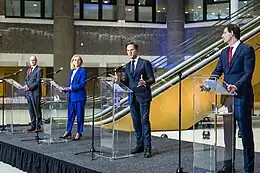 - ↑ "Partijleiders voor het eerst bijeen na verkiezingen: 'Nou, gefeliciteerd man!'". Nederlandse Omroep Stichting (in Dutch). 18 March 2021. Retrieved 18 March 2021.