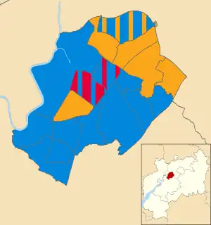 ![]() Map showing the results of the 2021 Gloucester City Council election | |||||||||||||||||||||||||||||||||