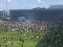 - ↑ "Notts County fans celebrate 'the best end to the best season'". BBC Sport. 14 May 2023. Archived from the original on 14 May 2023. Retrieved 12 October 2023.