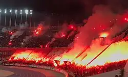 However less than three minutes later they lead an offensive by Orebonye who finds Bousseliou in the area who without panicking will shift Islam Merili who scores the second goal.[39] Sid Ahmed Arab explained that the club rejected the offer to play the second leg of the CAF Confederation Cup at Nelson Mandela Stadium. Arab explained that they prefer Stade du 5 Juillet because it is their stadium and they know it well, but the other one does not help the supporters.[38] On June 3, 2023, USM Alger became the first Algerian winners of the CAF Confederation Cup despite losing 1–0 at home in the second leg of the final. As rain that began early in the second half became increasingly heavy the match became increasingly scrappy, USMA pocketed a record two million dollars for winning.[40] In the match, Groupe UNITED 1937 attended to set up the largest tifo in Algeria that includes the entire stadium, but it was canceled after a group of MC Alger supporters came and spoiled it, so a battle broke out in the stands with them where the Police rescued them. After the match UNITED 1937 announced the suspension of its activities.