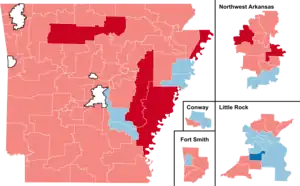 Republican: 50–60% 60–70% 70–80% 80–90% 90–100% Democratic: 40–50% 50–60% 70–80% 80–90% 90–100% | |||||||||||||||||||||||||