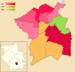 ![]() Map showing the strongest candidate by ward | |||||||||||||||||||||