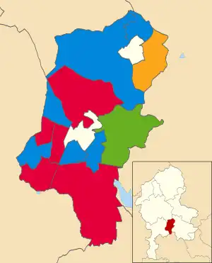 The result was a minimal change compared to when these seats were last contested in 2018. The Conservatives held their five wards and gained one from Labour who in turn held their remaining five seats.[2] It was no change elsewhere in the district: the Green Party regained the Rawnsley ward and the Liberal Democrats held their Brereton and Ravenhill seat.[3] Across the district, there was a small 1% swing to Labour compared to 2018; compared to 2021, the swing to Labour was 9.6%, reflecting the substantial change since the Conservatives' landslide victory.