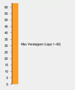 With Leclerc stuck behind Norris, the two Red Bull cars of Max Verstappen and Pérez built a lead, as Verstappen turned down a suggestion from his team to put on dry tyres and he continued racing, as did the rest of the field, despite reports of the track drying.[48] On lap 8,[56] Leclerc overtook Norris into turn 1, but by then he had a 6.2 and 3.3 seconds deficit to Verstappen and Pérez, respectively.[48] In the next seven laps, those gaps remained stable, as Verstappen was 5.5 seconds ahead of Pérez, with Leclerc at 1.9 seconds behind.[48] Verstappen told his team he was ready to switch to slick tyres in case a safety car was brought out but remained on track. Ricciardo went into the pits on lap 18 to switch to dry, medium compound tyres, which led the rest of the field to follow suit over the next few laps.[48] On lap 19,[56] both Pèrez and Russell, the latter now running fourth after overtaking Kevin Magnussen on lap 12,[56] pitted, which was a lap earlier than Verstappen and Leclerc, the latter of whom had a successful overcut to come in front of Pérez for second; however, due to Leclerc's colder tyres, Pérez was able to take the position back a few turns later, as Verstappen expanded his lead to 7.5 seconds.[48]