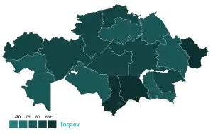 - 1 2 "The results of voter turnout and preliminary results of voting in the early elections of the President of the Republic of Kazakhstan". www.election.gov.kz. 21 November 2022. Retrieved 17 January 2023.