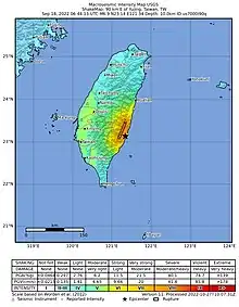 - ↑ "中央氣象局地震測報中心 第111號有感地震報告" (in Chinese). 2022-09-19. Archived from the original on 2022-09-22. Retrieved 2022-09-18.