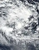 On December 2, the FMS declared that Tropical Disturbance 03F had formed.[39] Analysis from the JTWC indicated that the disturbance was in a favorable environment for development, with warm sea surface temperatures and low vertical wind shear.[40] Moving southward, the disturbance would exit the basin on December 4 and enter the Australian region, where the Bureau of Meteorology (BoM) assumed responsibility for the system. In the Australian basin, the system would later intensify into Severe Tropical Cyclone Jasper.[41][42]