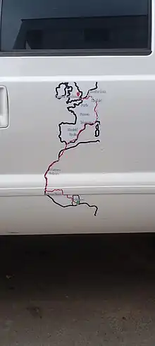 They started the journey from Oyarifa, a suburb of Accra[1] through Aburi, Nsawam, Kumasi, and Sunyani to Dormaa and finally entered Ivory Coast via Golokrom. They moved through five countries namely Ivory Coast, Mali, Senegal where they were invited by El Hadji Diouf for lunch,[6] Mauritania and Morocco where they spent three days.[7]
