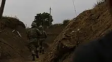 Shelling of Stepanakert continued until the city's electrical grid was knocked out several hours after the ceasefire was supposed to go into effect.[116][117] According to a statement from the Russian Ministry of Defense, several peacekeepers were killed near the village of Chankatagh in Tartar District after their vehicle was attacked while they were returning from an observation post.[118][119][120] Azerbaijani official Elin Suleymanov admitted that Azeri forces had killed the peacekeepers, calling it an accident, expressed condolences to Russia, and vowed to launch a probe into what happened.[13][121][122][123][124] Among those killed was Captain First Rank Ivan Kovgan, the deputy commander of Russia's Northern Fleet submarine forces,[125] and a concurrent deputy commander of the peacekeeping force.[126] With Azerbaijani cooperation, Russian peacekeepers detained suspects, and an Azerbaijani commander was suspended.[127] President Ilham Aliyev subsequently apologized over phone to Russian President Vladimir Putin for the incident.[128] According to the Prosecutor General's Office of Azerbaijan, a group of military personnel of the Azerbaijan army opened fire on a car with Russian peacekeepers, mistaken believing they were Armenian forces due to the difficult terrain and foggy-rainy weather conditions. As a result five peacekeepers were killed.[129][130]
