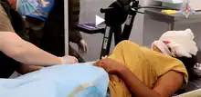 The government of Artsakh said that families left homeless due to Azerbaijan's military offensive and who expressed a desire to leave Artsakh will be transferred to Armenia, accompanied by Russian peacekeepers. It was reported that 23 ambulances, accompanied by specialists and the Red Cross, were transporting 23 severely injured people from Artsakh to Armenia.[141] In Armenia, the theatre in the city of Goris was converted into a base for the Red Cross to accommodate refugees.[142] A secondary hub was later opened in Vayk.[143] Armenian Health Minister Anahit Avanesian said some refugees died in transit due to exhaustion brought about by malnutrition, the lack of medicines and the travel time which took up to 40 hours.[144] The Armenian government promised a one-off payment to each refugee of 100,000 drams and provide a monthly subsidy of 50,000 drams for at least six months, adding that it had so far managed to provided temporary accommodation for 53,000 refugees.[145]