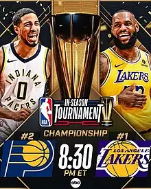 The Lakers won the championship game by beating the Pacers 123–109, consequently clinching the first-ever NBA Cup title. The Lakers' Anthony Davis had a 41-point and 20-rebound game to lead the team, while LeBron James was named the In-Season Tournament MVP.