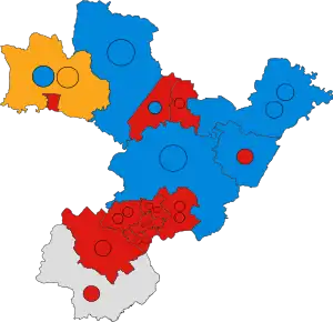 Labour won a majority of the seats on the council at the election. The result in Hilton ward was declared void after Conservative candidate Gillian Lemmon died during the election count. The three seats for that ward were therefore left vacant pending a by-election.[2] The Hilton election was subsequently held on 15 June 2023 and saw the Liberal Democrats gain two of the three seats there, giving them their first representation on the council. Conservative group leader Peter Smith was one of the candidates defeated in Hilton ward.[3]