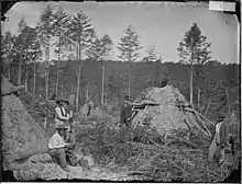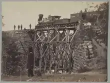 After the Union victory in the Shenandoah at Cedar Creek, the railroad was no longer necessary, and the regiment helped remove the ties and rails. Following the completion of the rail destruction, the 202nd returned to Alexandria, guarding the Orange and Alexandria Railroad from Bull Run to Alexandria, headquartered at Fairfax Station. There, it became part of the 1st Separate Brigade of XXII Corps.[4] The soldiers of the regiment escorted woodmen felling timber for the construction of four large fortifications near Fairfax Station and details transporting timber for the needs of the army. In a New Year's greeting for 1865 sent to the regiment by brigade commander General William Gamble, he complimented the brigade, writing "You have a good regiment, and I am glad to know the right kind of a Colonel is at the head of it."[1]