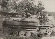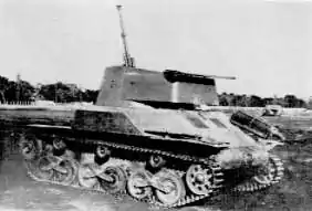 An earlier produced prototype was designated the experimental Type 97 Ki-To self-propelled anti-aircraft gun. The original Type 97 Te-Ke tankette turret was removed, and a single Type 98 20 mm autocannon was mounted on the modified chassis.[4] There was no protective gun shield for the crew. The chassis was elongated with an extra road-wheel on each side. It did not enter production.