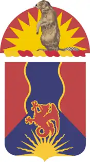 These battalions were inactivated on 15 September 1945, at Fort Canby and Fort Stevens, respectively.[1][6] They were perpetuated postwar by the 722nd and 732nd Antiaircraft Artillery Battalions of the Oregon Army National Guard, which were consolidated into the 249th Artillery under the Combat Arms Regimental System.[2][3]