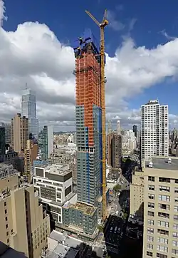 252 East 57th Street is a mixed use modernist style residential skyscraper in Midtown Manhattan, New York City, developed by the World Wide Group and Rose Associates, Inc. Construction started in 2013. The building is part of a luxury residential corridor along 57th Street called Billionaires' Row.[4] The residential tower rises to 712 feet (217 m) with condominiums starting on the 36th floor, and is the 63rd tallest building in New York. The complex also houses two new schools and 78,000 square feet (7,200 m2) of retail space, in addition to a Whole Foods Market. The residential tower and additional retail portions were anticipated to open in late 2016,[5][6] and the project was largely complete by 2017.