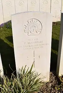 Grave of a soldier of the 2nd Australian Pioneers in the Montbrehain Military Cemetery.
