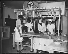 The primary duties of the 32nd and 33rd Post Headquarters Companies were to take over post support duties at Fort Huachuca from the 93rd Infantry Division, releasing them for "possible combat assignments."[1] Jobs that the 32nd and 33rd companies took over included working as typists, stenographers, clerks, messengers, receptionists, switch-board operators, librarians, medical technicians, photographers and postal clerks, who were also known to the male soldiers as "postal packin' mamas."[4]