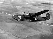 The group was first activated at Alamogordo Army Air Field, New Mexico on 1 June 1943 as the 445th Bombardment Group, with the 740th, 741st, 742d and 743d Bombardment Squadrons assigned.[15][16][17][18][19] The initial cadre for the group was drawn from the 302d Bombardment Group. In July, a cadre was given advanced tactical training by the Army Air Forces School of Applied Tactics at Orlando Army Air Base and Pinecastle Army Air Field, Florida. After organizing at Alamogordo, the group moved to Utah, where the ground echelon was stationed at Kearns Army Air Base, although flying operations were based at Salt Lake City Army Air Base.[20] After completing training at Langley Field, Virginia, the group departed the United States for the Mediterranean Theater of Operations in December 1943.[17] The air echelon began staging through Mitchel Field, New York to ferry their Liberators via the southern ferry route.[21] The ground echelon of group headquarters sailed on the SS William T. Barry.[22]