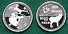 5000 yen commemorative coins were minted again in sterling silver to celebrate the 1998 Winter Olympics, which were held in the Japanese city of Nagano. The actual production of the coins however, took place in 1997 (9th year of Heisei) and lasted into 1998 (Heisei 10).[8][9][10] They were then released in sets of three different series alongside 500 and 10,000 yen Nagano commemoratives. A limit of 5,000,000 coins each (133,000 for proofs) was set for the 5000 yen denomination. Three different Olympic themes were used on the obverse sides of the coins as a design feature: Hockey (series 1), Biathlon (series 2), and Paralympic Skier (series 3).[8][9][10] For the reverse a Serow is featured along with the value and date.