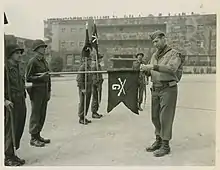The war officially ended in Europe on 8 May 1945. The 504th returned briefly to Nancy, France until the 82nd Airborne Division, the British 11th Armoured Division and the 5th Cossack Division were called upon to serve as the occupation forces in Berlin. Here the 82nd Airborne Division earned the name, "America's Guard of Honor," as a fitting end to hostilities in which the 504th had chased the German Army some 14,000 miles (23,000 km) across the European Theater.[1]