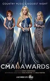 53rd Annual Country Music Association Awards were held on November 13, 2019, at Bridgestone Arena in Nashville, Tennessee.[2] The ceremony recognizes some of the best country music released during the eligibility period. Carrie Underwood hosted the event with special guest hosts Reba McEntire and Dolly Parton, celebrating legendary women in country music.[3] "In addition to awarding the year's best and brightest in the genre, the 53rd Annual CMA Awards will celebrate the legacy of women within country music, and we couldn't think of a more dynamic group of women to host the show." said CMA CEO Sarah Trahern.[4] For the first time in CMA history, women were nominated in every category, except Male Vocalist of the Year. However, when all was said and done, the sole female Entertainer of the Year nominee, Carrie Underwood, lost the top honor to Garth Brooks; upsetting fans and leading to Garth Brooks stepping down from the category the following year.[5]