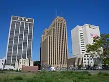 The Brutalist style building was built in 1966 during the New Newark era by the Mutual Benefit Life Insurance Company and the George A. Fuller Company and was once known as the Fidelity Union Building, after the company which occupied it.[7] In 2000, the Heritage Capital Group purchased the tower and implemented a multimillion-dollar renovation-modernization in 2001, winning the state's Building of the Year award. While Heritage sold 80% interest in 550 Broad Street in 2005, it retains 20 percent ownership and acts as executive operating partner and on-site manager.[8][9] The company also renovated nearby 570 Broad Street.[10] As of 2012 the major tenant for the building is IDT, which is owner of the nearby Mutual Benefit Life Building.[11]