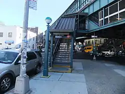 The station house was renovated as part of the Metropolitan Transportation Authority's 2005-2009 Capital Program. Square windows were installed in the mezzanine and chain link fences separate the street stairs from the platform ones.