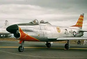 1. Aircraft is North American F-86D-40-NA Sabre, serial 52-3730. This plane was assigned to the Colorado Air National Guard in 1960, then savaged at the Military Aircraft Storage and Disposal Center. Baugher, Joe (7 April 2023). "1952 USAF Serial Numbers". Joe Baugher. Retrieved 13 April 2023.