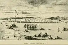 In January 1863, the regiment received orders to fortify their camp outside of New Bern. The improved camp was named Fort Peirson in honor of their commanding officer.[19] During the spring of 1863, the unit took part in several expeditions to reconnoiter and dislodge enemy positions along the Pamlico and Neuse Rivers. These expeditions involved only minor skirmishing.[20]