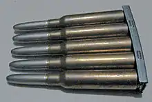 In 1891, the Swedish-Norwegian Rifle Commission started its work. After extensive ballistic tests where different calibers were tested (8 mm, 7.5 mm, 7 mm, 6.5 mm etc.), the optimal caliber was determined to be 6.5 mm (0.256 in). Following this decision, a joint Norwegian-Swedish commission was established in December 1893.[6] This commission worked through a series of meetings to decide on the different measurements for the cartridge case. The Norwegians early presented a 6.5 mm rimless cartridge design, but the Swedes wanted a rimmed cartridge. As a compromise, the Norwegians produced an experimental semi-rimmed cartridge which was very similar to what would become the final version. The book Cartridge Cases refers to this cartridge as 6.5mm Norwegian Experimantal.[13] This cartridge had a 6.7 mm bullet, a 55 mm long case, but differed from what became the final version by having a slightly less tapered shoulder, a slightly smaller diameter base (11.75 mm) as well as being semi-rimmed (12.6 mm). However, after a firearm demonstration by Mauser, the Swedes changed their mind and wanted a rimless design. After further discussions, a rimless cartridge case of 55 mm length was approved, and each possible measurement (diameter at base, diameter at neck, angle of case, angle of shoulder etc.) was decided upon.[6] The corresponding dimensions of the cartridge chamber to be used in a future service rifle was also determined.[6] At the time of its development the 6.5×55mm was a high-performance smokeless-powder cartridge. The design of the joint Norwegian-Swedish commission was subsequently adopted by the Norwegian and Swedish governments, and entered service in the Norwegian and Swedish militaries. The cartridge was also adopted by the Danish, Norwegian and Swedish civilian shooting associations DDS, DFS and FSR.