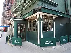 - J.G. Melon, at 1291 Third Avenue on the north-east corner of East 74th Street, hamburger restaurant, where a scene for the Academy Award-winning movie Kramer vs. Kramer was filmed with Dustin Hoffman and Meryl Streep.[25]