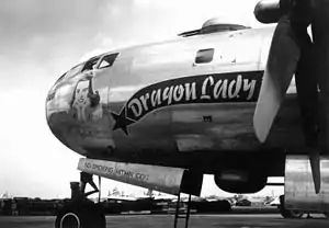 1. Aircraft is Boeing B-29-55-BW Superfortress, serial 44-69663, Dragon Lady. This plane was reclaimed at Robins AFB, Georgia on 18 March 1954. Baugher, Joe (10 June 2023). "1944 USAF Serial Numbers". Joe Baugher. Retrieved 20 July 2023.