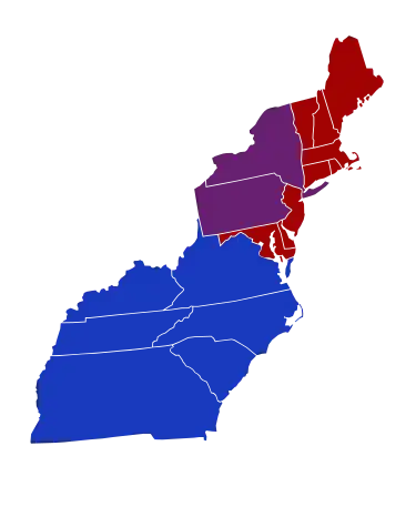 ![]() Senators' party membership by state at the opening of the 7th Congress in March 1801.
