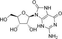 8-Hydroxyguanosine is an RNA nucleoside which is an oxidative derivative of guanosine. Measurement of the levels of 8-hydroxyguanosine is used as a biomarker of oxidative stress causing RNA damage.[1]