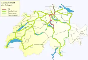 Location of the A4 within Switzerland