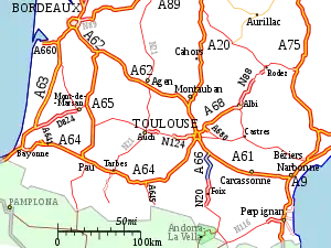 The A66 autoroute is a 38.2 kilometres (23.7 mi) long motorway in the south of France, also called L'Ariégeoise.